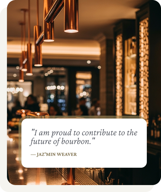 A certified Executive Bourbon Steward, 2022 LEE Initiative Mentee, and former Secretary of the USBG Detroit chapter, Jaz’ now serves as the National Brand Ambassador for Bardstown Bourbon Company.