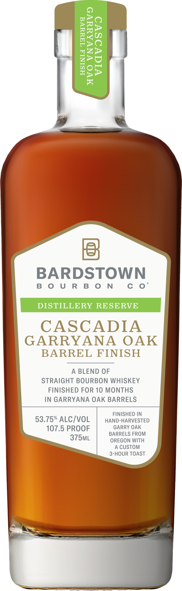 Cascadia blends three bourbons aged 9 and 10 years, which were then rested for 10 months in 10 custom Garryana barrels. Each barrel was custom-made and hand-toasted for three hours by Oregon Barrel Works to unlock additional layers of spice and complexity. Summer aging on the 6th floor was chosen for maximum extraction, and the whiskey was then gradually proofed before bottling.
